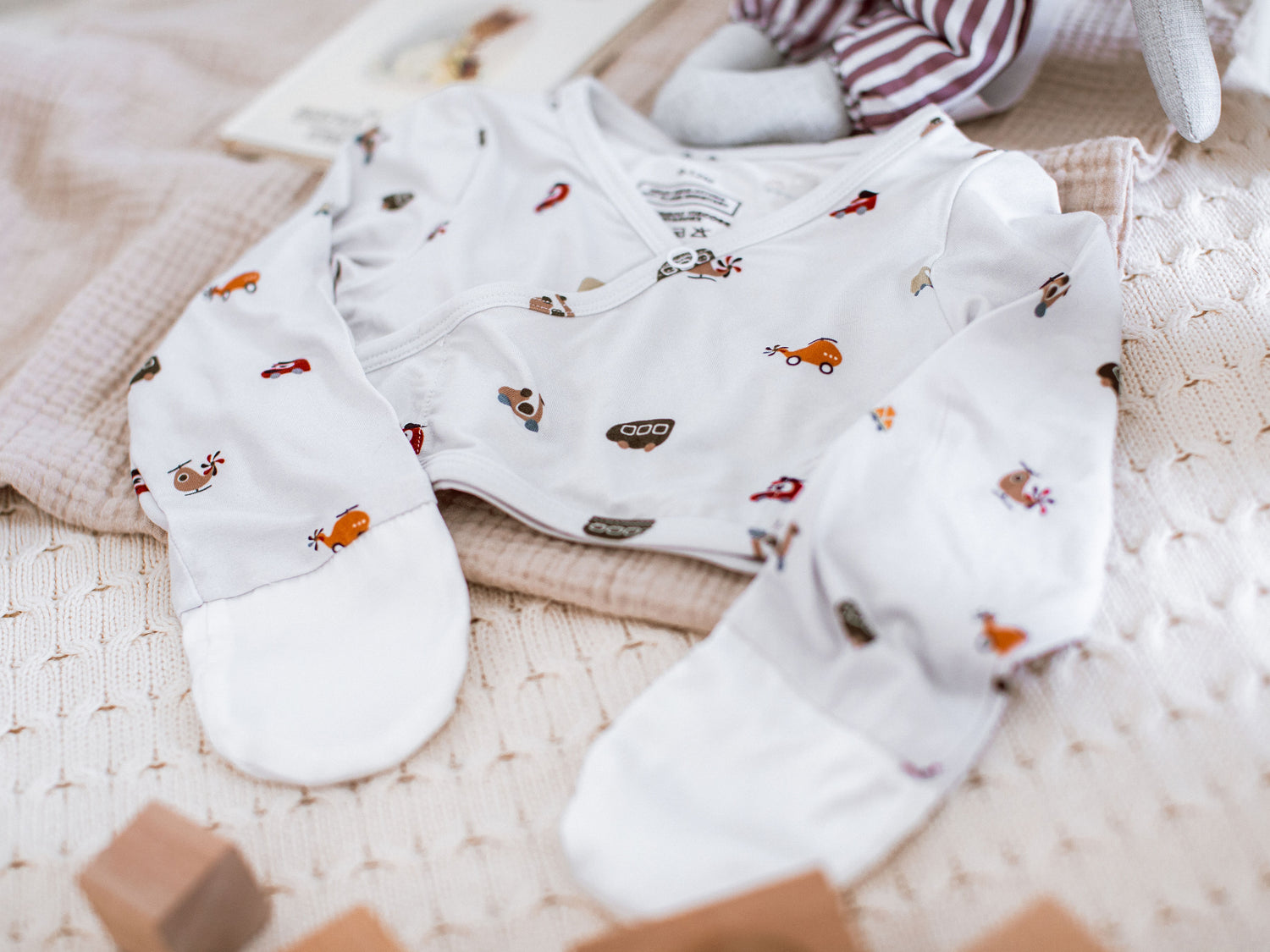 Sewn-In Hand Covers — Integrated mitten design means no snaps, no velcro, and no pieces to lose. They fold over tiny hands and stay put all day and night.
